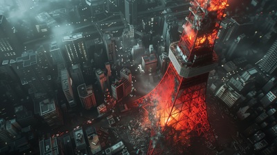 خلفية برج مشتعل في نهاية العالم بجودة 4K للابتوب والكمبيوتر
